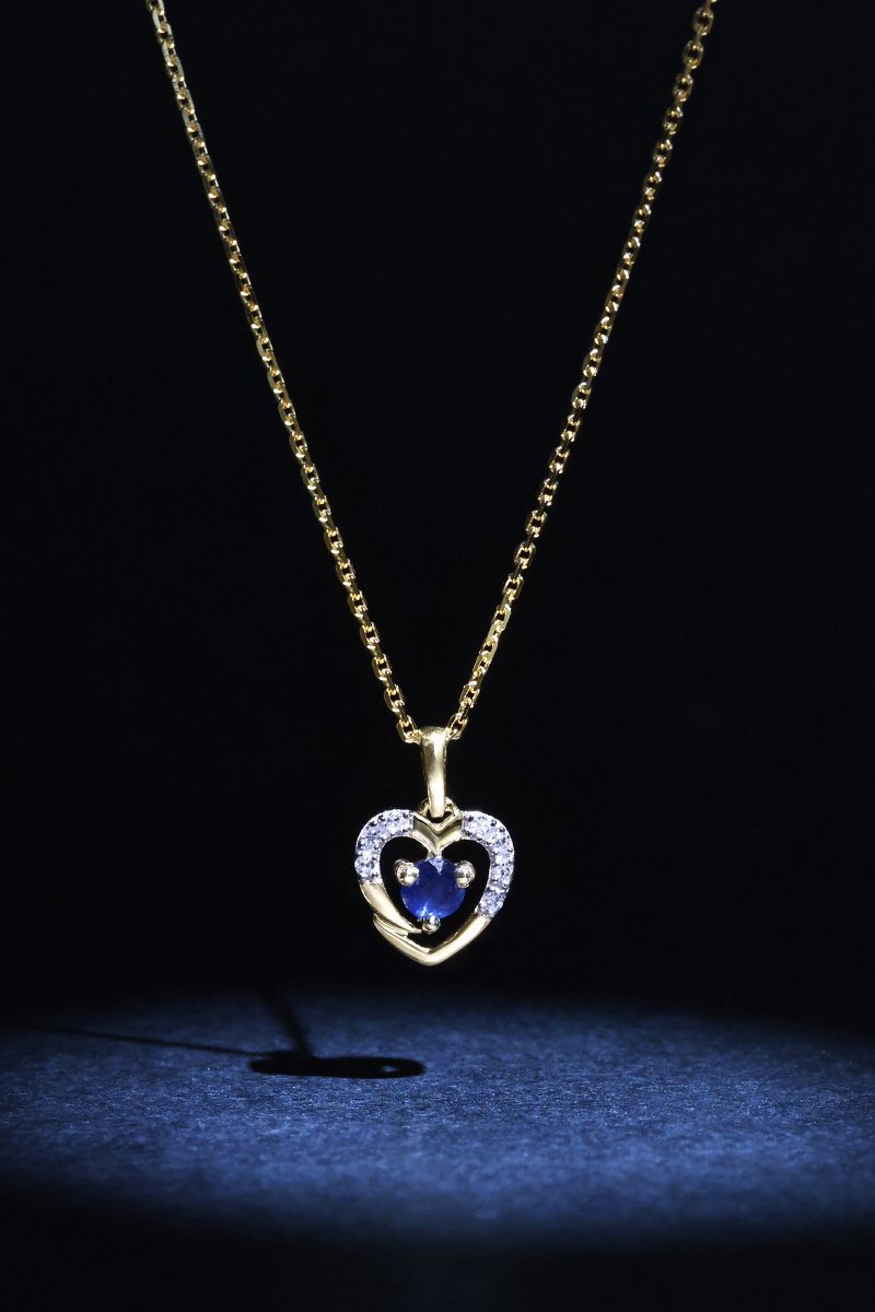 Hanger Heart - Geelgoud, Diamanten en Saffier
