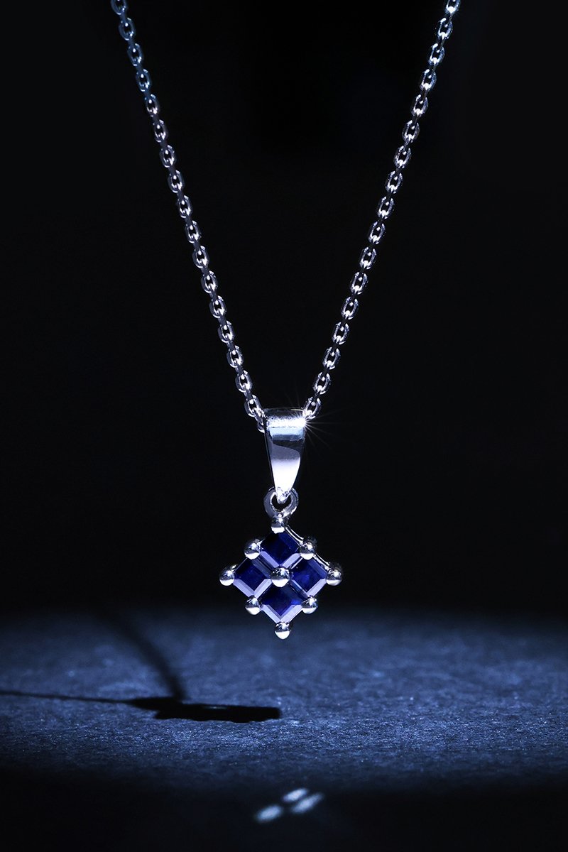 Materiaal: witgoud 750/1000 en saffieren 0,26 karaat/4