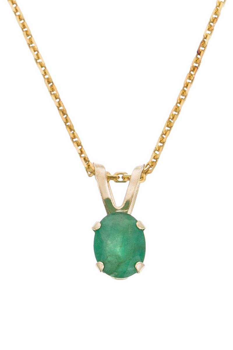 Hanger van geelgoud ingelegd met 1 smaragd.