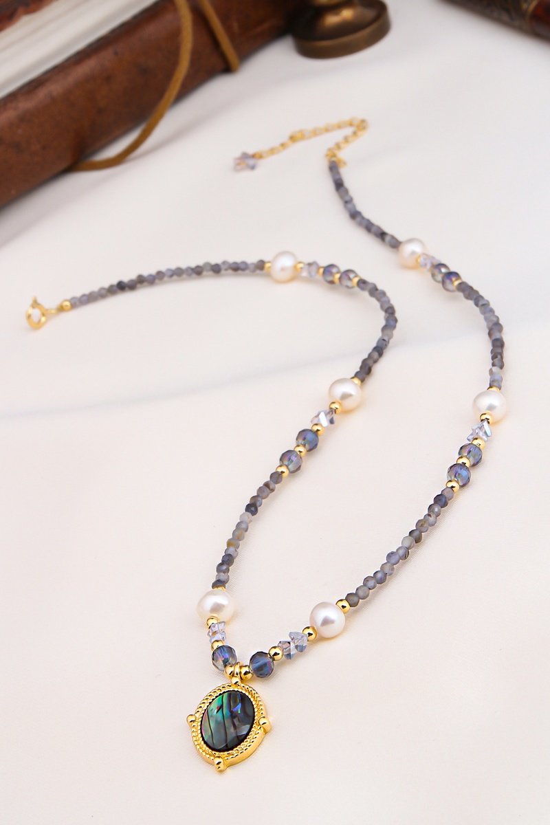 Ketting ingelegd met parelmoer en 6 cultivéparels.