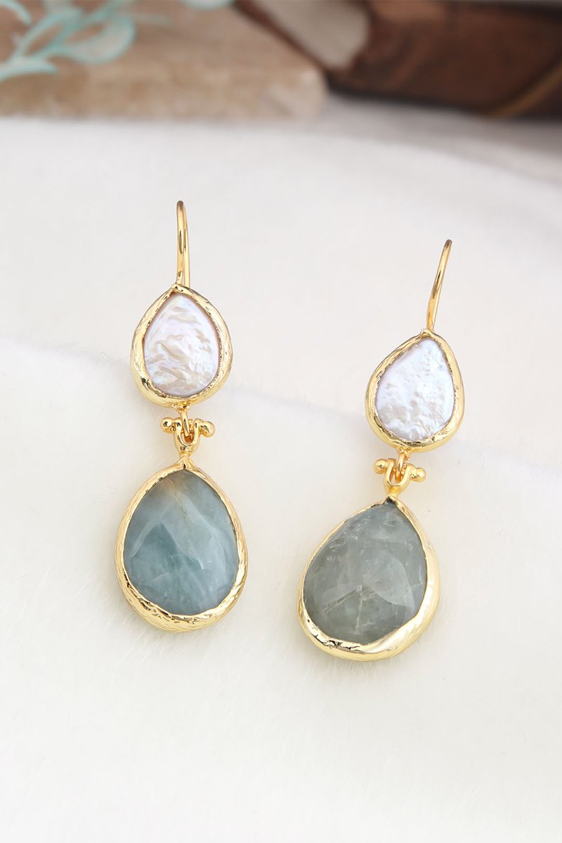 Oorbellen - Doublé geelgoud, amazoniet en cultivéparels