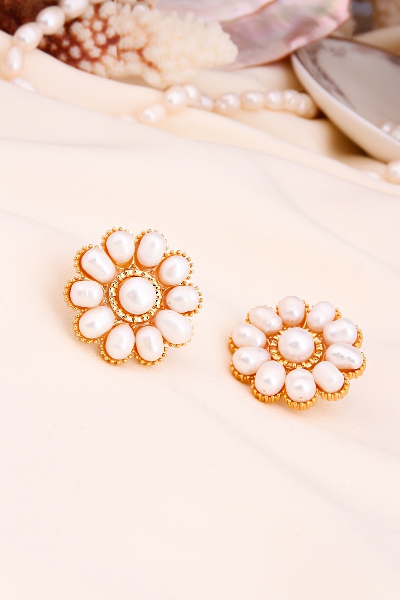 Materiaal: messing doublé geelgoud en kunstparels