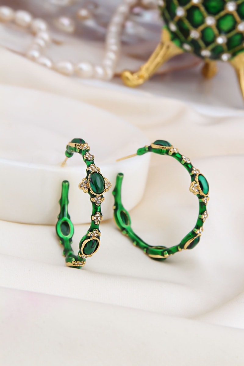 Halve Creolen - Doublé Geelgoud, Malachieten en Zirkonia’s