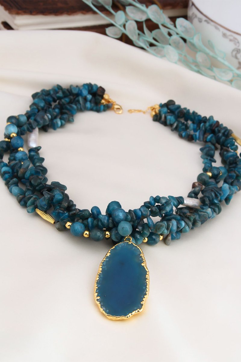 Ketting met meerdere rijen ingelegd met apatieten.