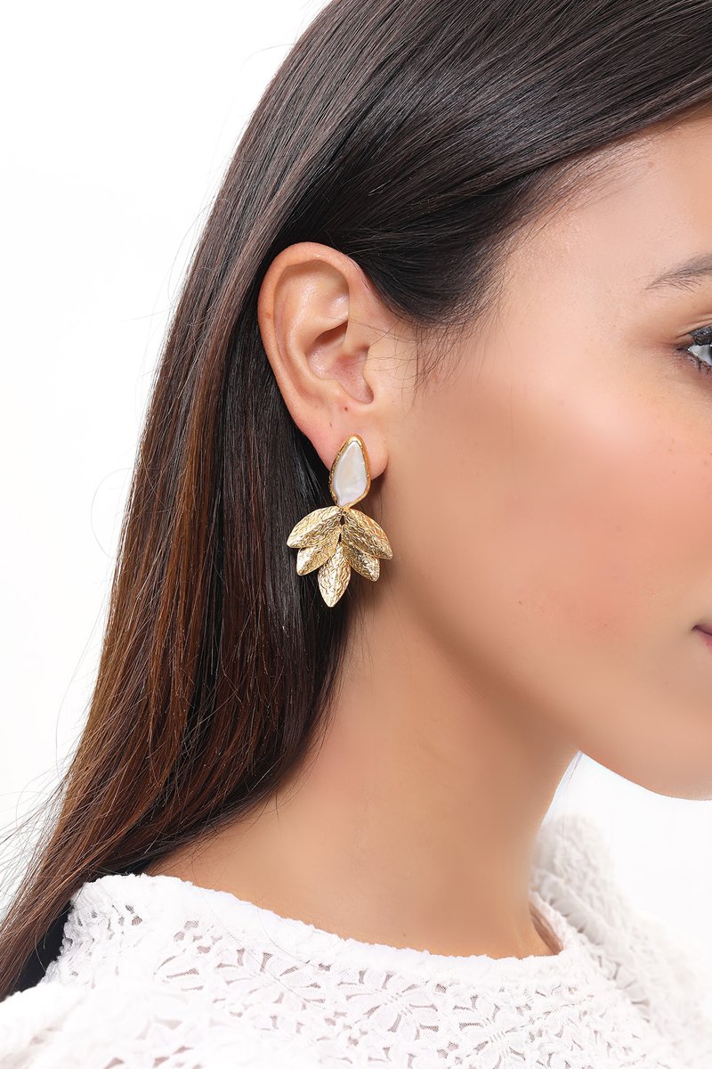 Hangende oorbellen van verguld metaal ingelegd met 1 cultivéparel.