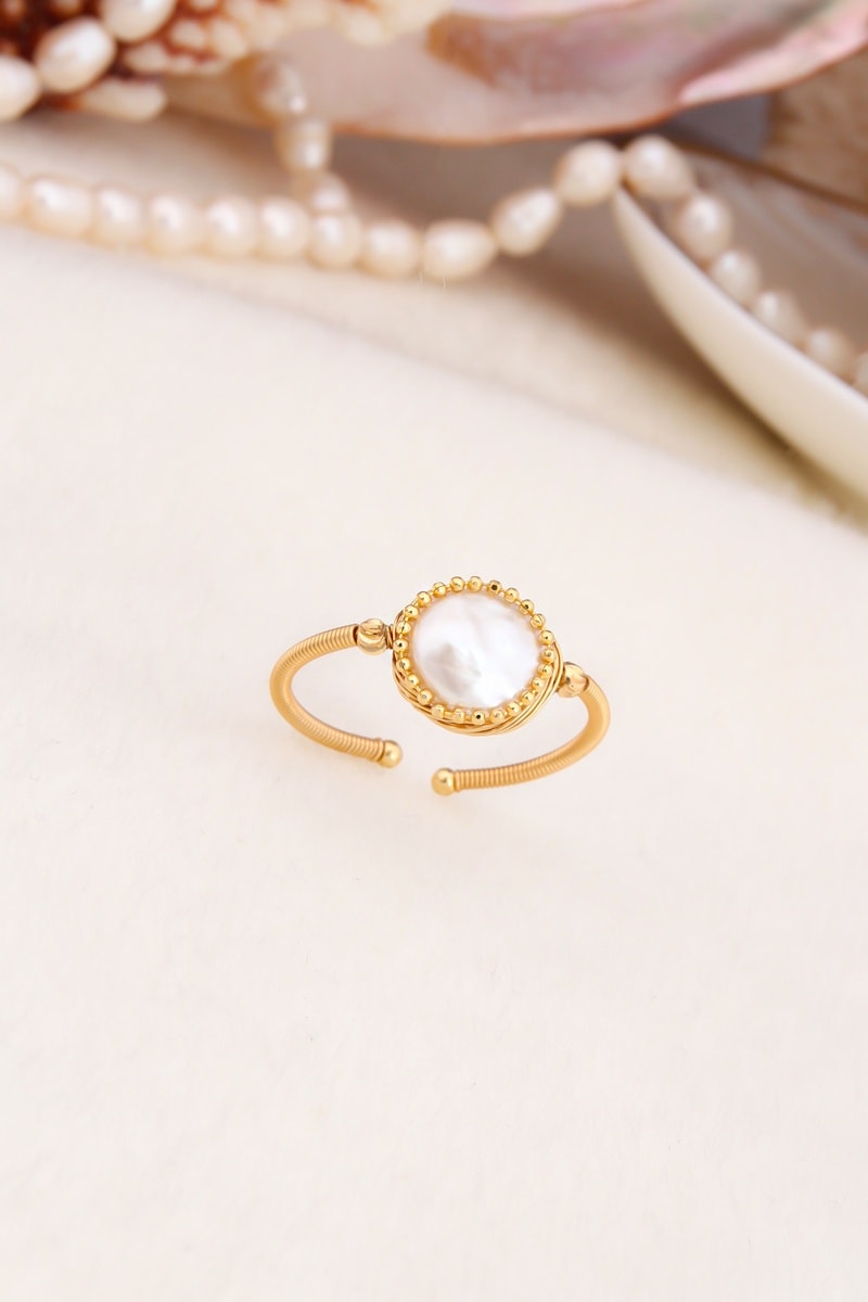 Verstelbare ring van doublé geelgoud ingelegd met parelmoer.