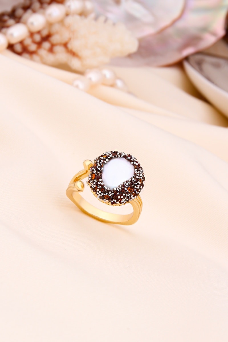 Verstelbare ring van doublé geelgoud ingelegd met zirkonia's.