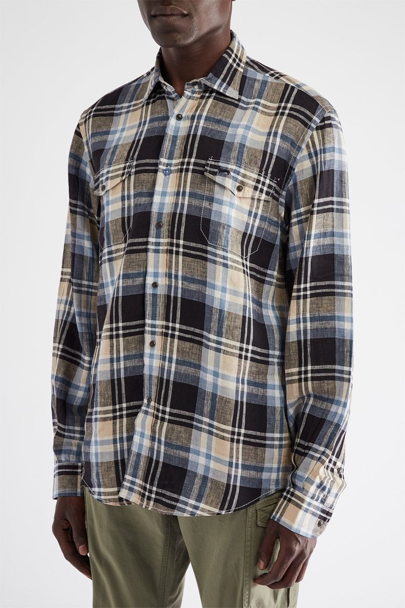 Overhemd van linnen met lange mouwen met knopen.