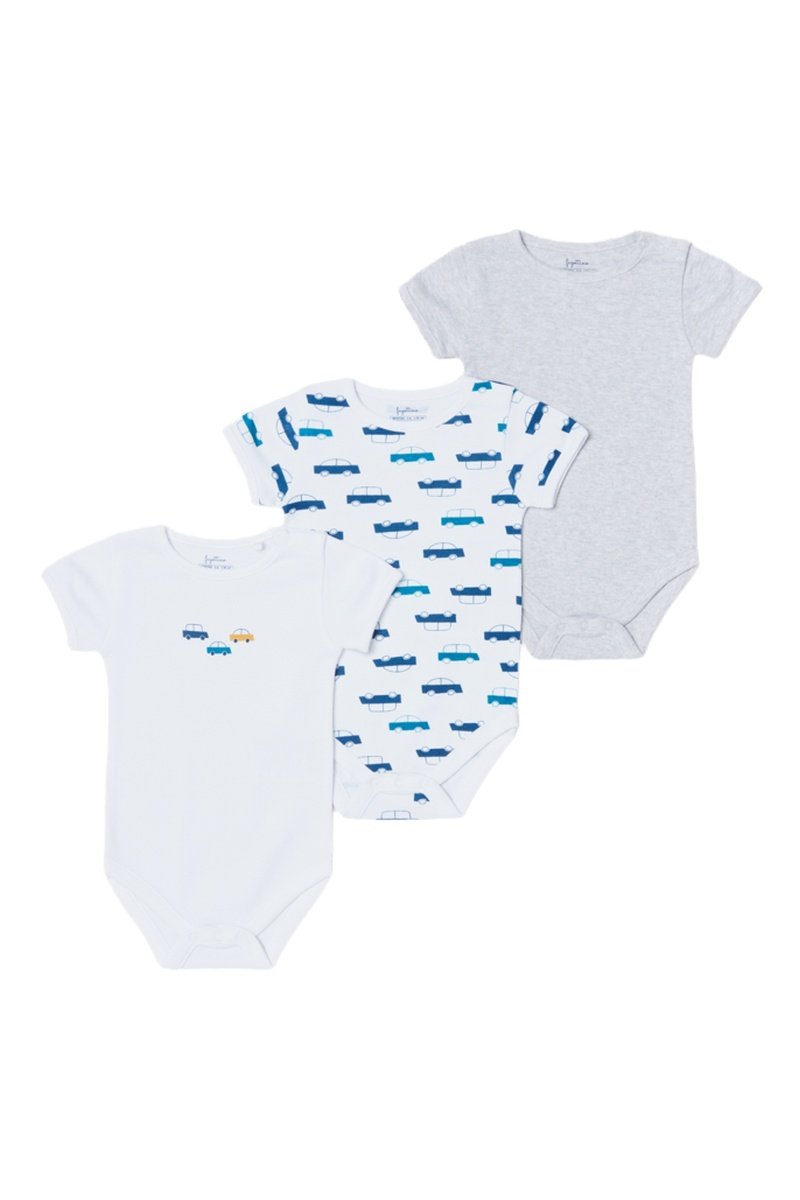 3 bodysuits waarvan 1 met decoratief motief aan de voorkant.