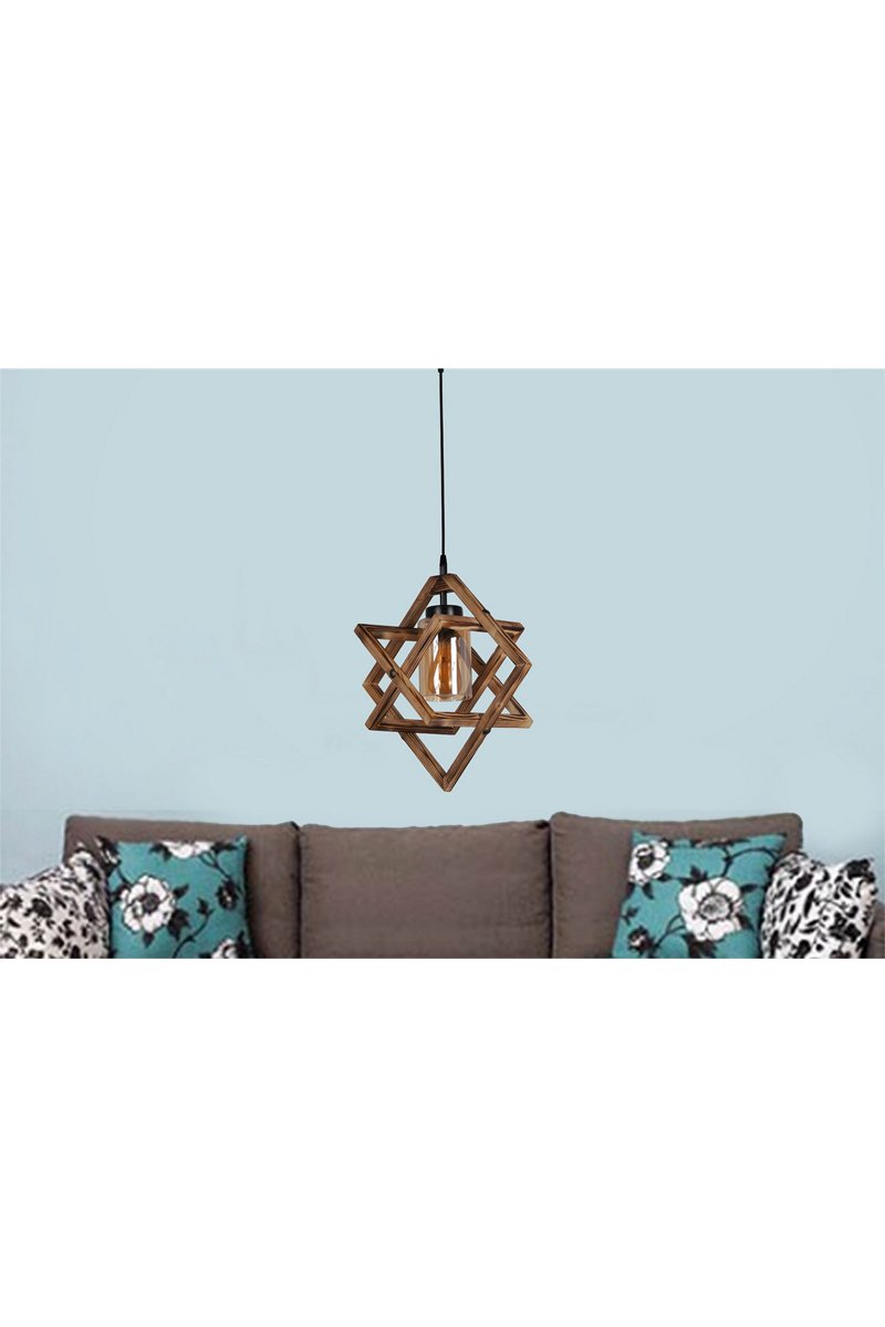 Houten Hanglamp Berlin Ahsap Tekli Sarkit Yanik - Naturel en Zwart - 60 W