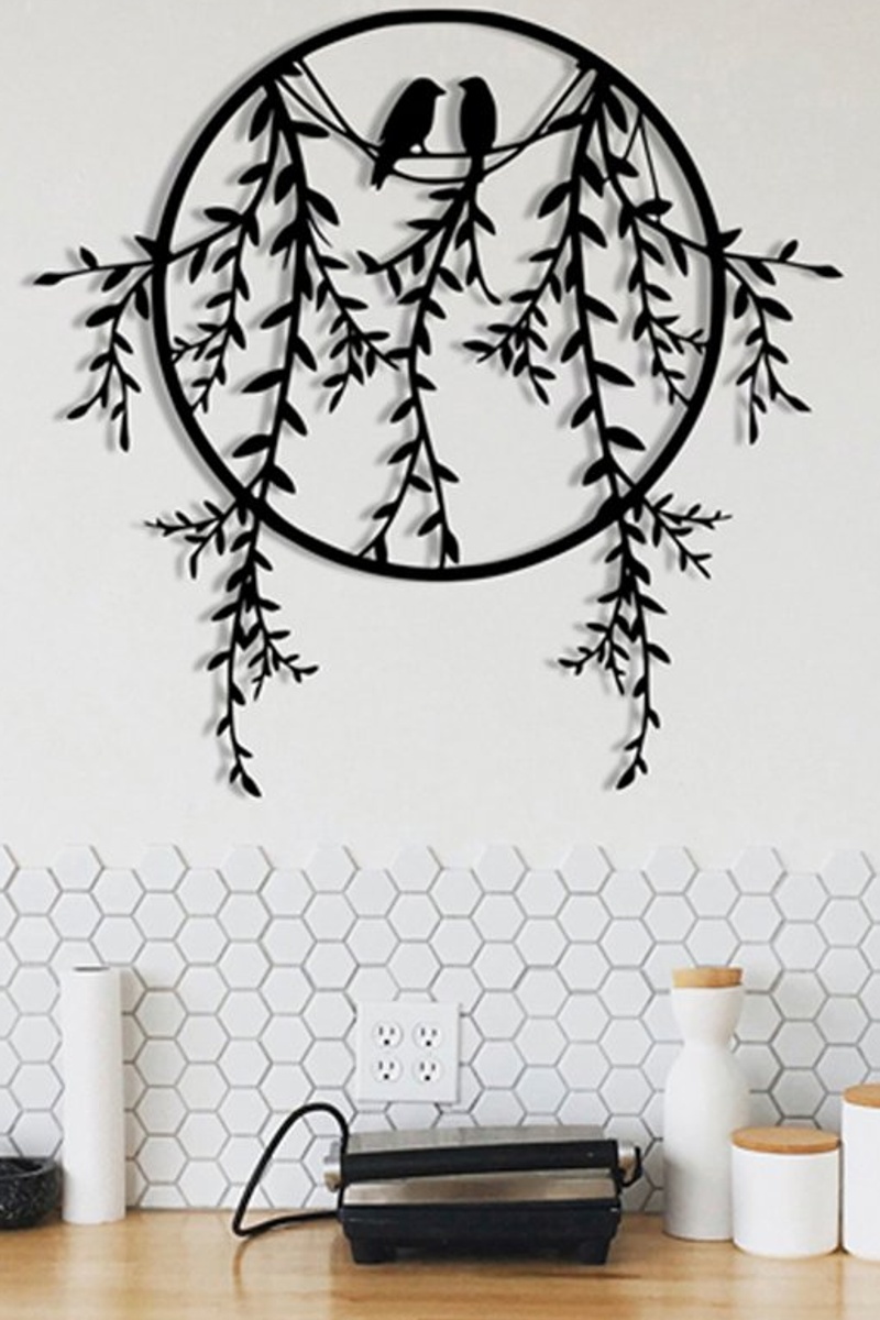 Wanddecoratie van metaal.