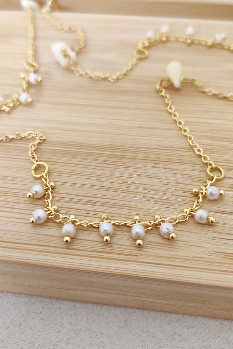Materiaal: messing en kunstparels