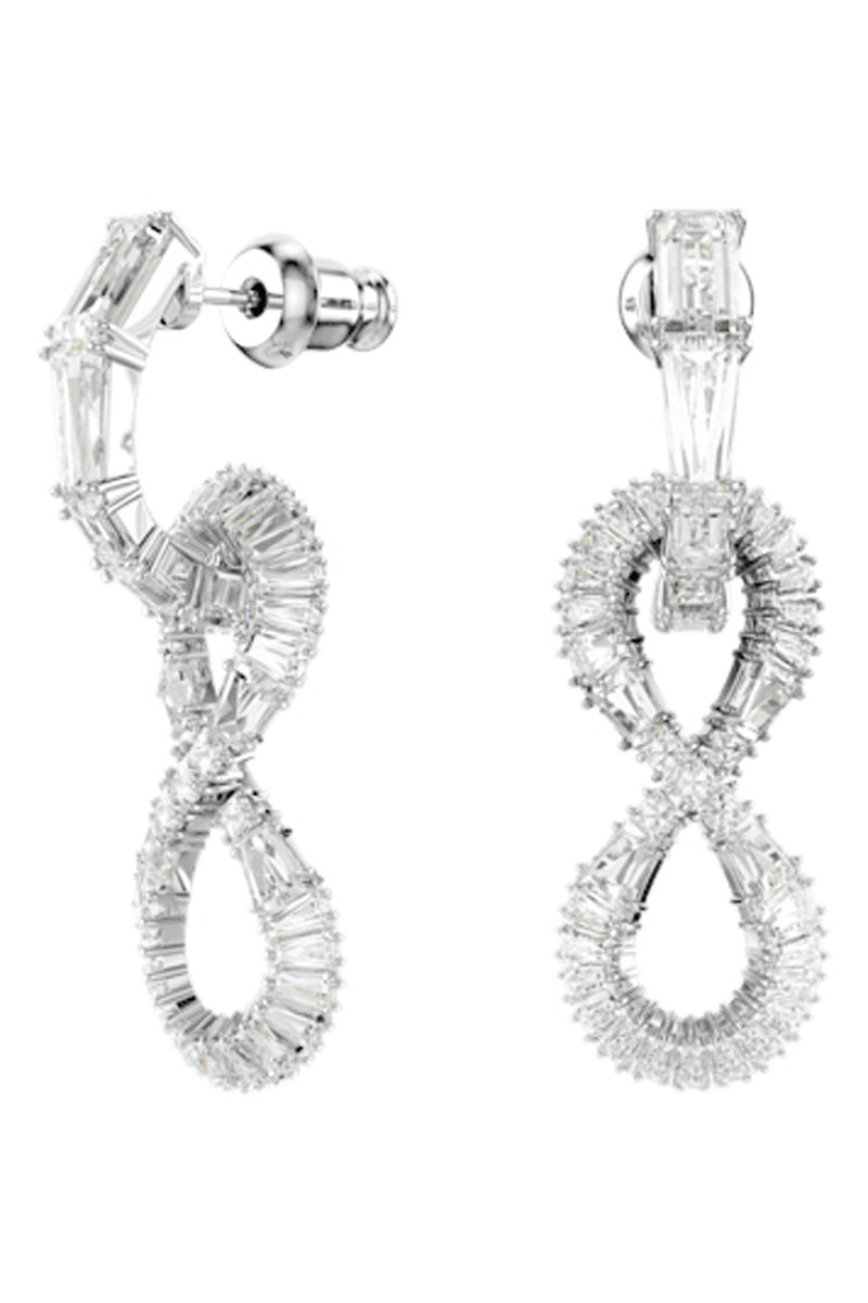 Oorbellen met Swarovski Kristallen Hyperbola - Zilverkleurig en Wit