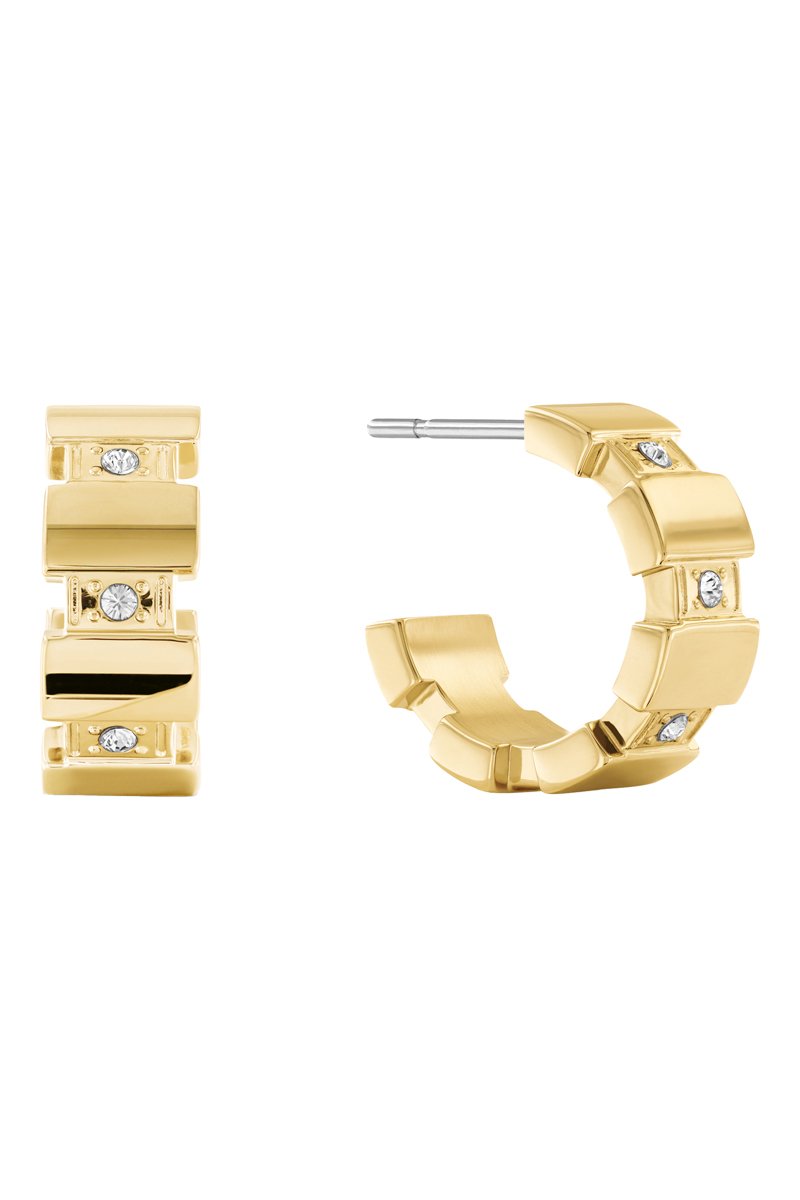 Creolen van doublé geelgoud ingelegd met kristallen.