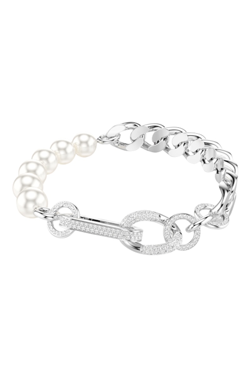 Materiaal: gerhodineerd metaal, kristallen Swarovski® en kunstparels