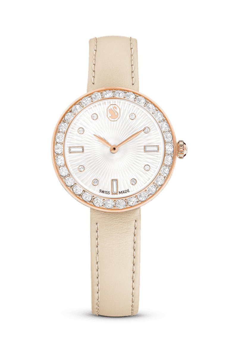 Kalfsleren Quartz Horloge, Roséverguld en met Swarovski Kristallen Certa