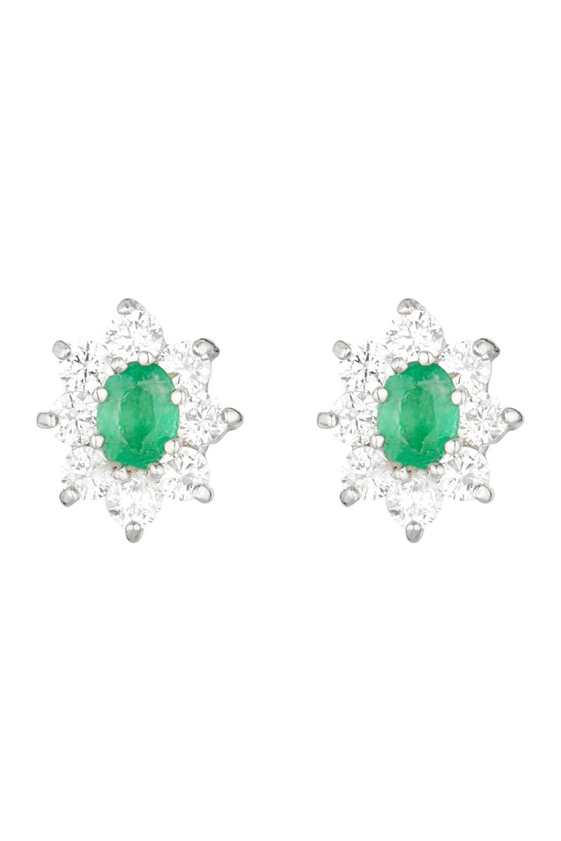 Oorbellen van witgoud ingelegd met 1 smaragd en zirkonia's.