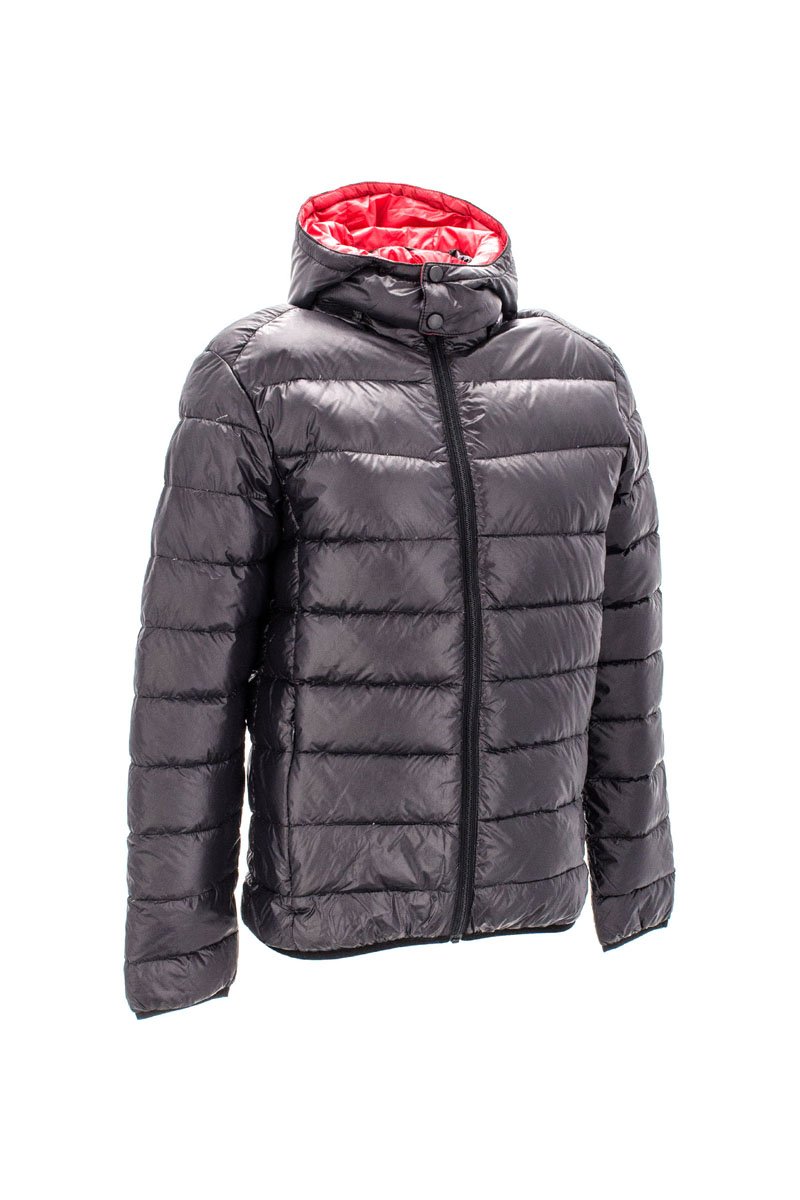 Gewatteerde jas met capuchon.