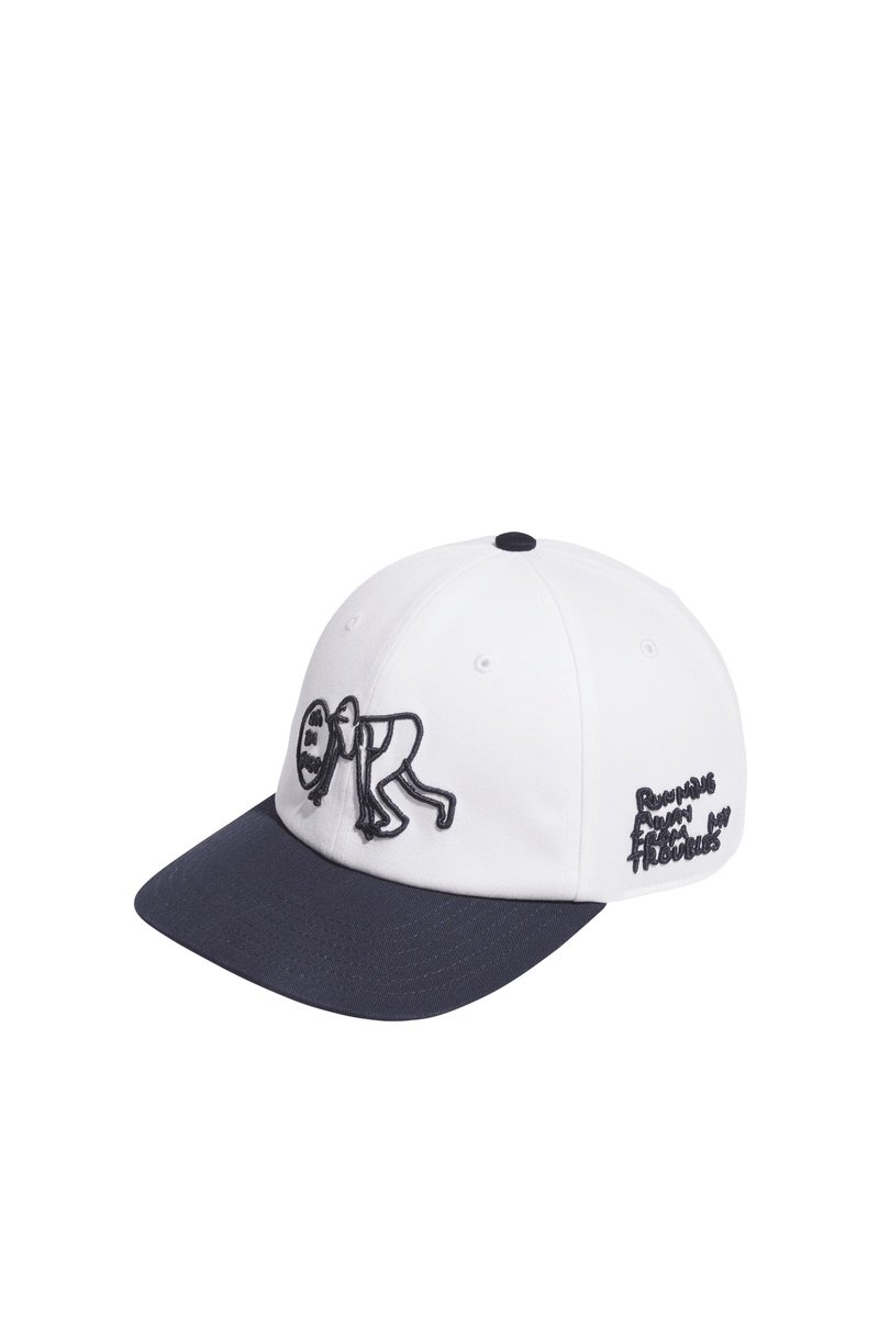 Geborduurde belettering aan de voor- en zijkant.