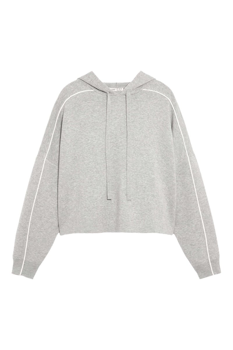 Sweater met capuchon en trekkoorden.
