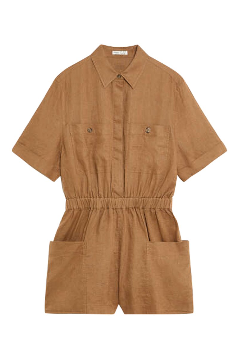 Playsuit van linnen met korte mouwen.