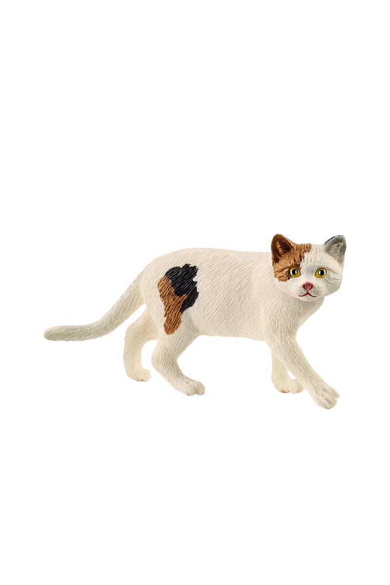 De mooie vlekken op het gezicht en lichaam van de Amerikaanse korthaar van Schleich® Farm World laten zien hoe gevarieerd en leuk de vacht van dit kattenras kan zijn. Dankzij hun zeer aanhankelijke en zachtaardige aard staan ze bijna altijd in de top 10 van populairste kattenrassen. Het zijn heel intelligente katten.
