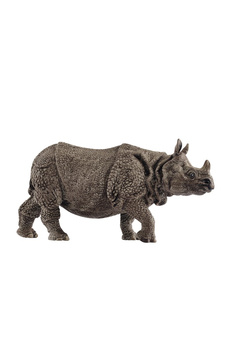 Door de opvallende plooien in zijn huid, lijkt de neushoorn een harnas te dragen.