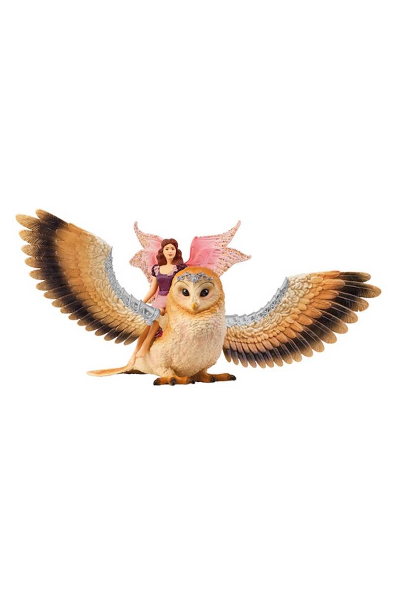 De elf zit op de rug van de glinsterende uil. De mensen van Bayala® voelen de magie als de wezens sierlijk door de lucht zweven. Van daarboven stuurt de elf een vriendelijke groet naar alle inwoners. De versieringen en prachtige vleugels van de uil fonkelen in het zonlicht, waardoor ze een zilverachtige glans krijgen. De uiteinden van de vleugels hebben een prachtige bronzen kleur.