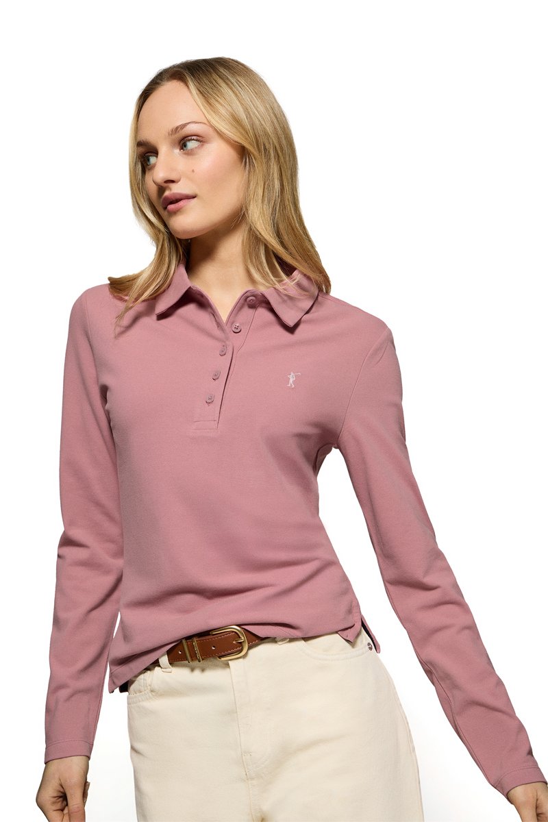 Polo Slim Fit L-S - Roze
