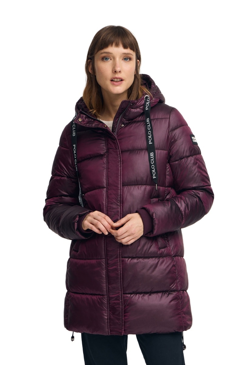 Lange gewatteerde jas met capuchon - Bordeauxrood