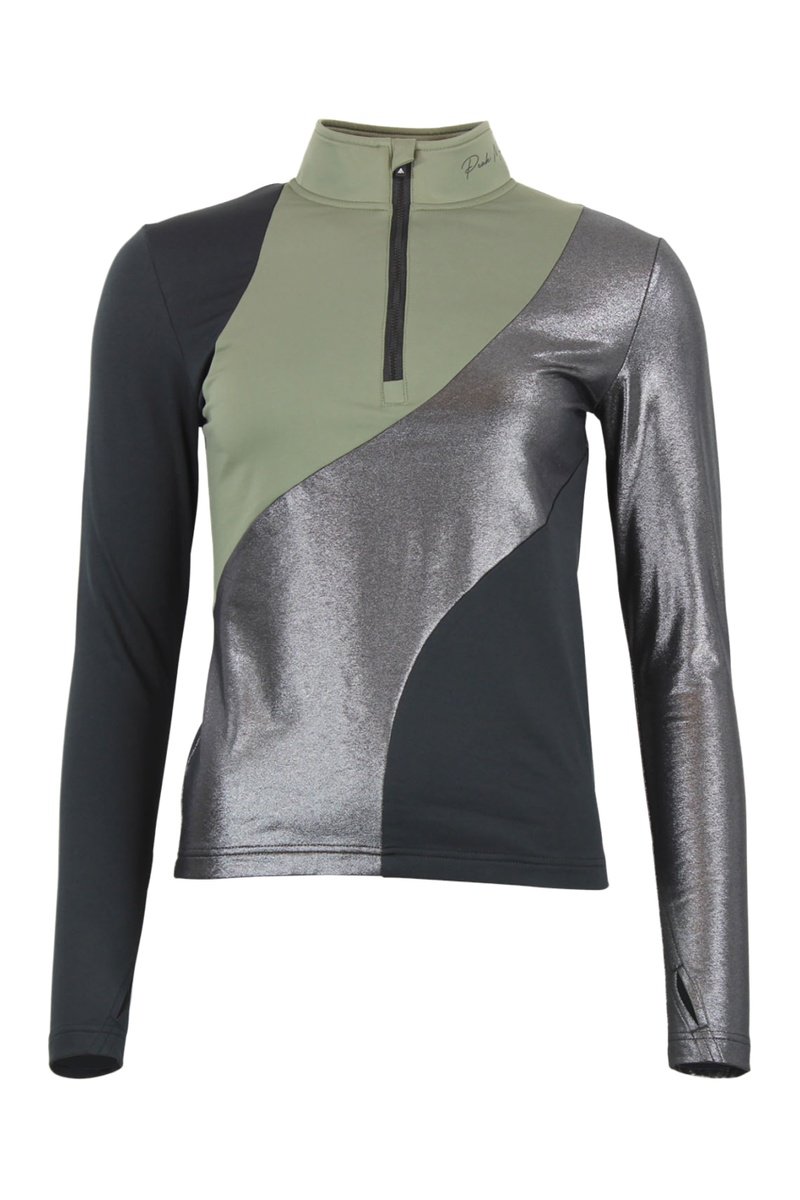 Detail met metallic effect op de linkermouw, aan de voorkant en aan de achterkant.
