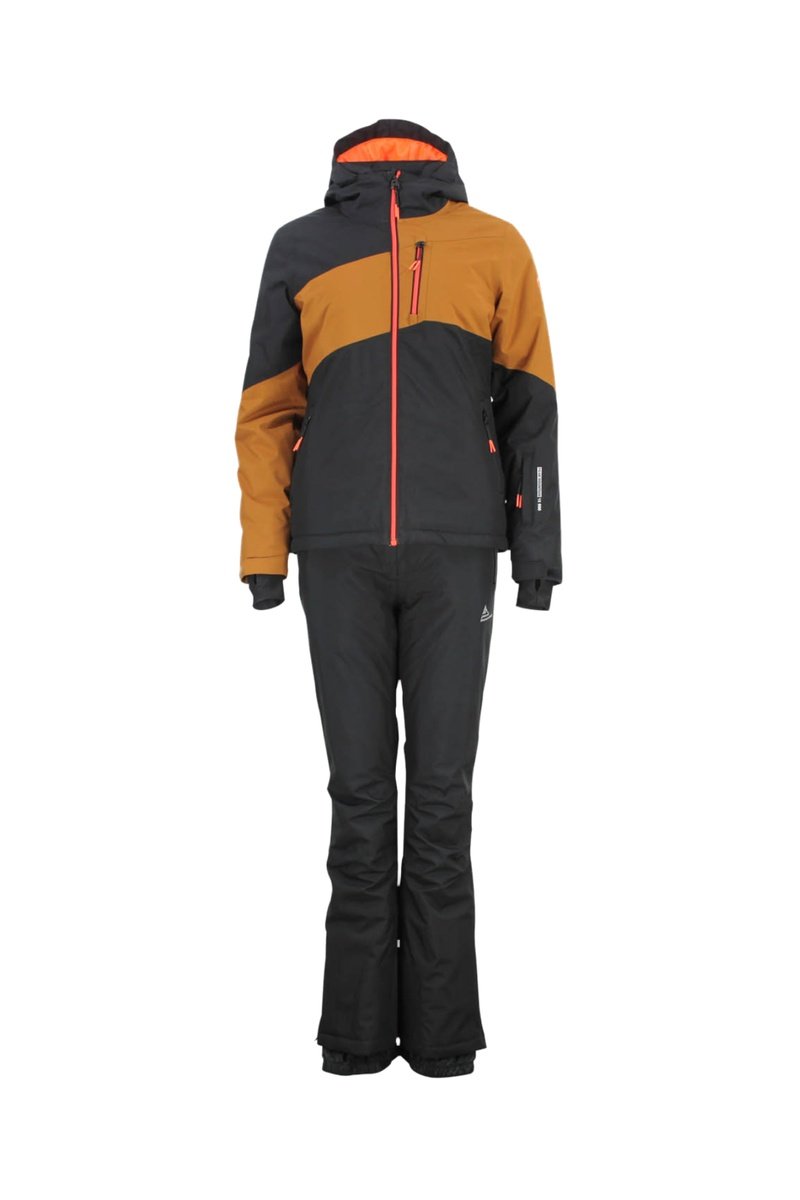 Jasje met Capuchon en Skibroek Anice - Koraalrood en Zwart - Zwart en bruin