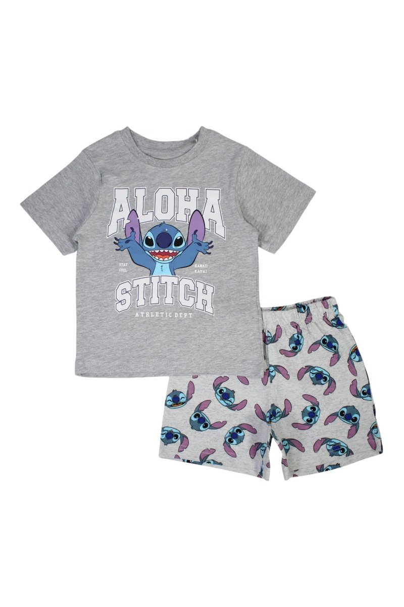 T-shirt en Short Stitch Lilo en Stitch Disney - Gemêleerd Lichtgrijs - Blauw, grijs en roze