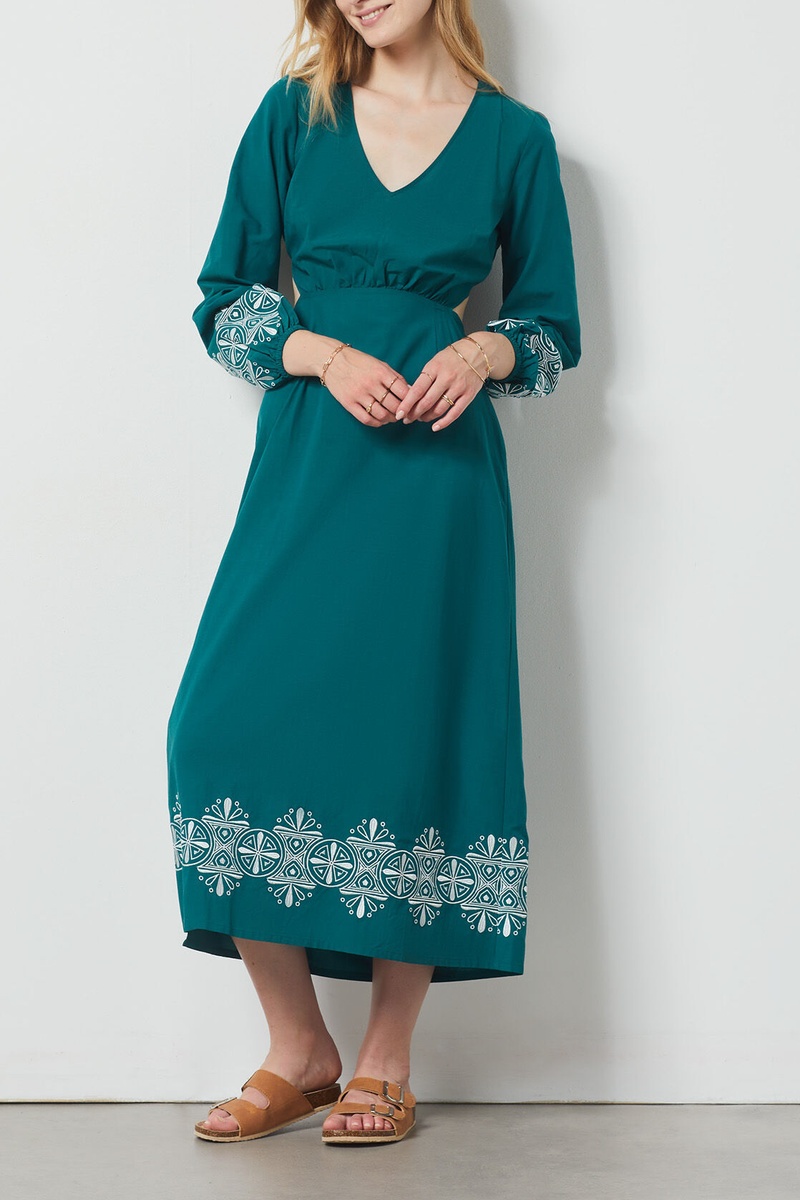 Lange jurk met lange mouwen.