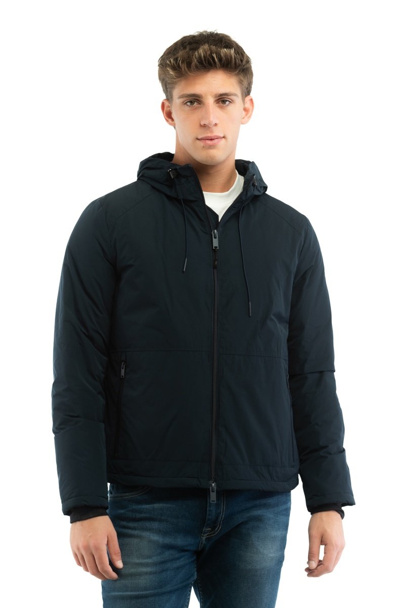 Jasje met capuchon en trekkoorden.