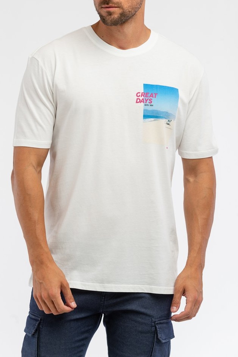 Strandopdruk en belettering aan de voorkant.