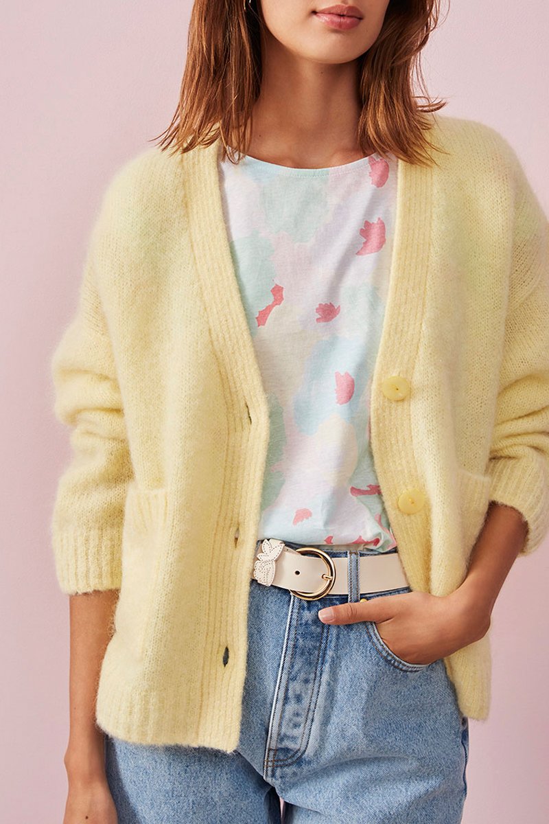Mohair en Wollen Vest Citronnade - Geel