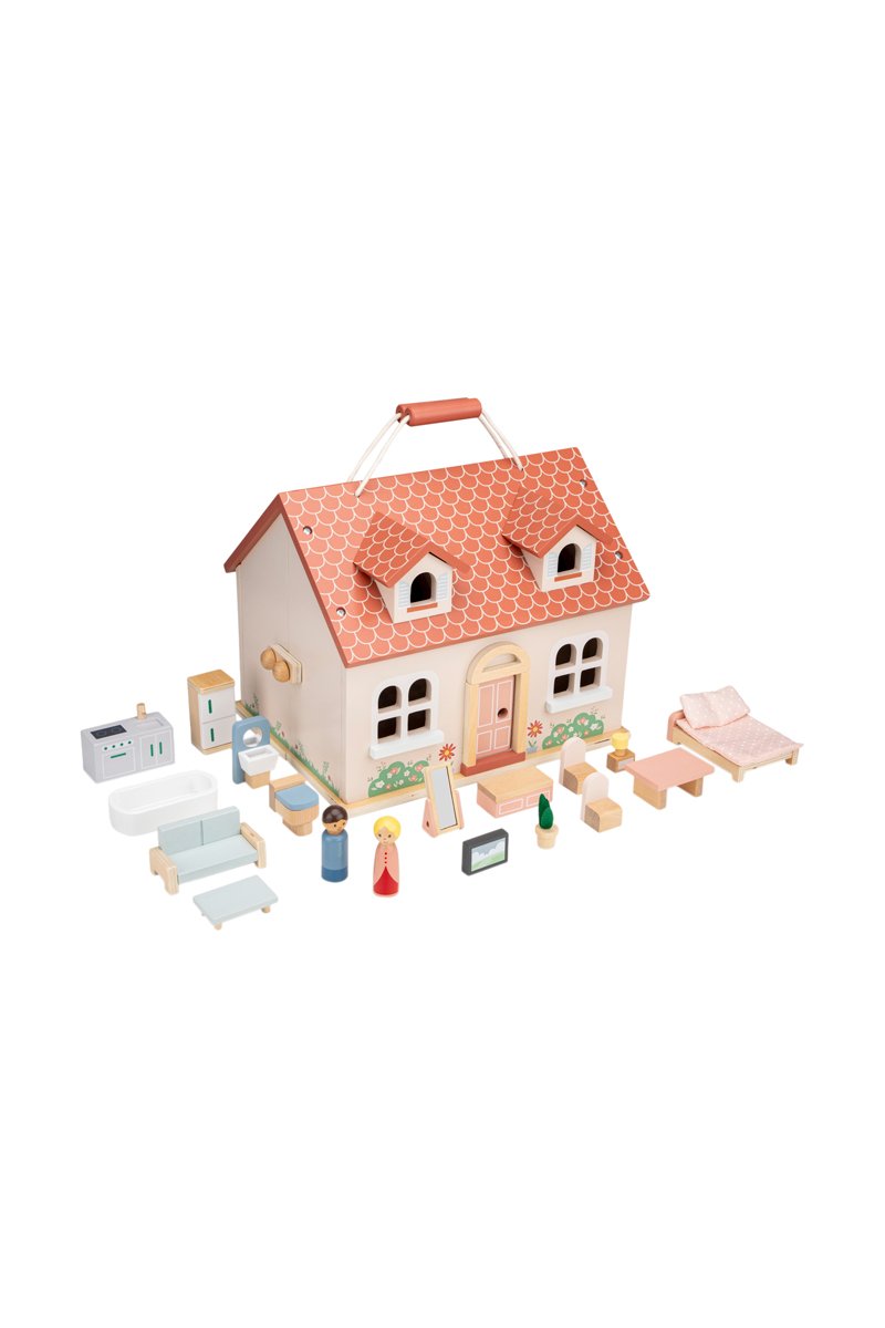 Inklapbaar Houten Poppenhuis - 21-delig - Vanaf 3 Jaar