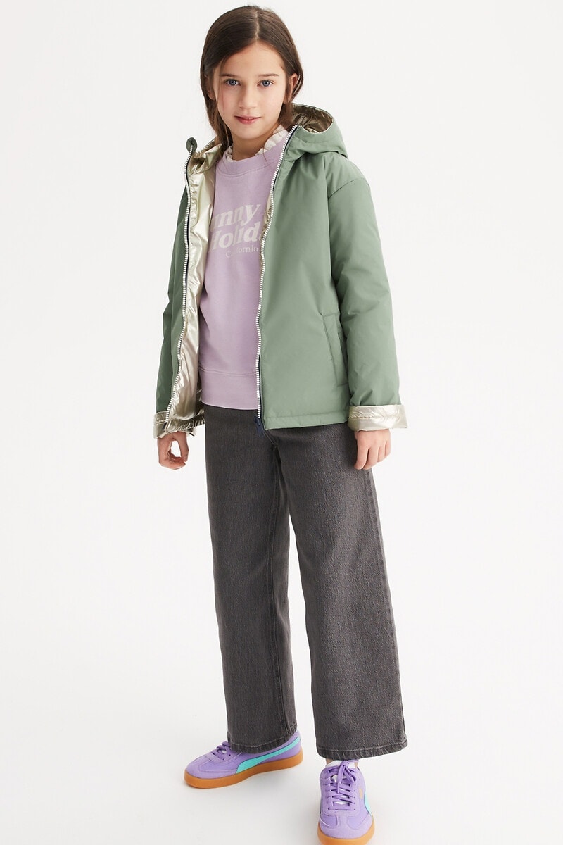Dubbelzijdig Windjack met Capuchon - Kaki en Goudkleurig