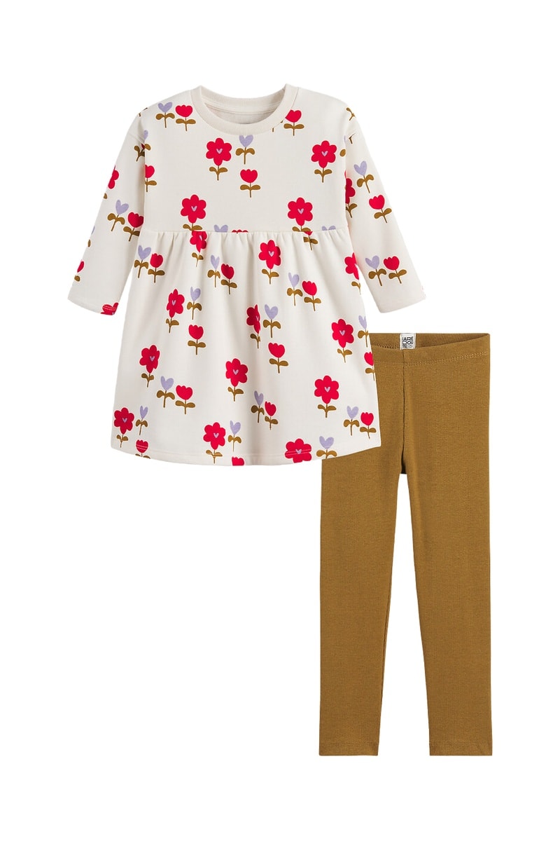 Jurk en Legging - Ecru en Kaki
