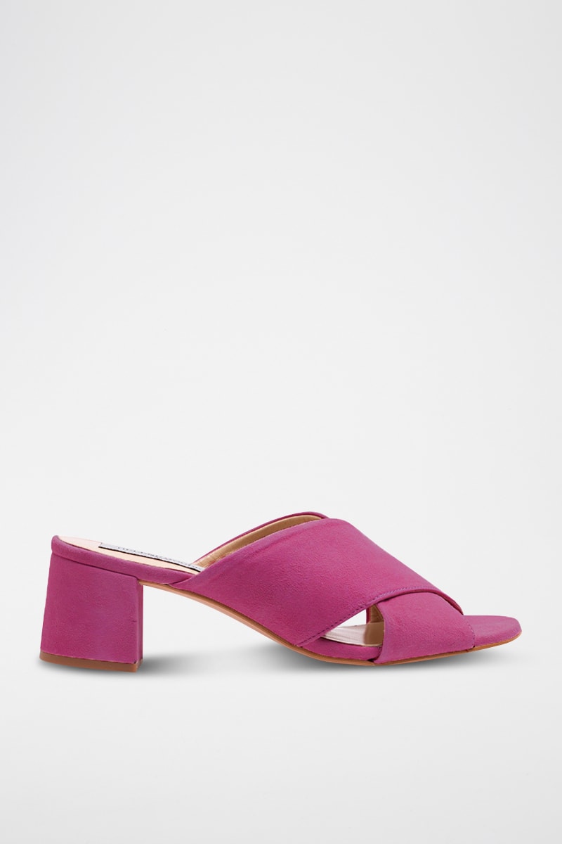 Muiltjes van nubuck met hak.