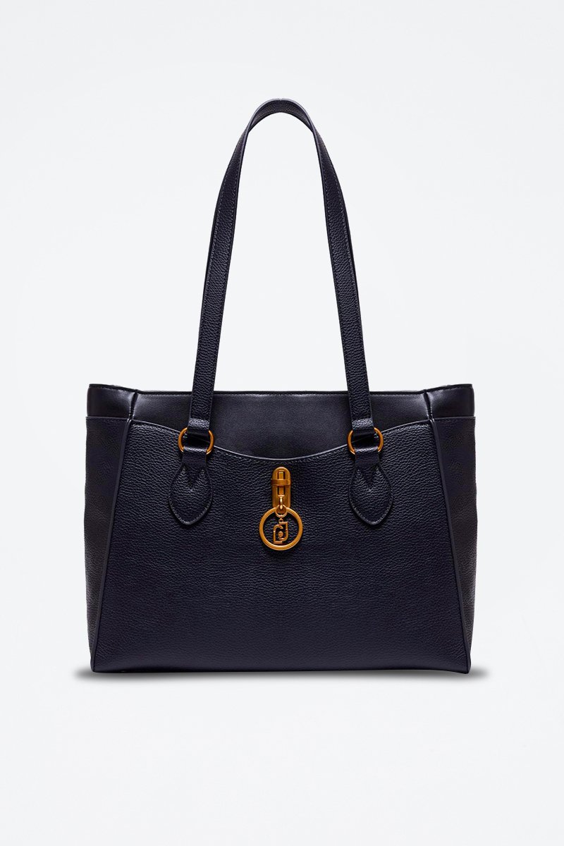 Vak met draaisluiting, ring en logo van metaal aan de achterkant.