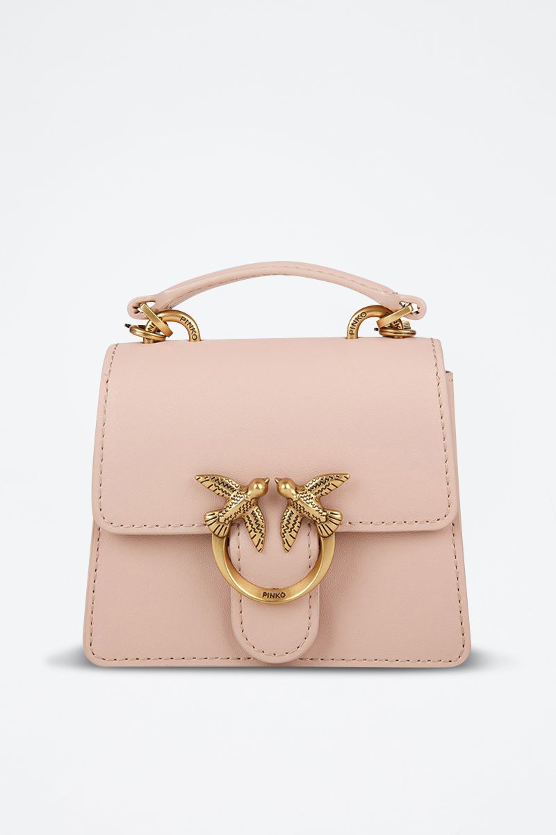 Leren Handtas Love One Top Handle Micro Light Vitello Seta - Poederroze