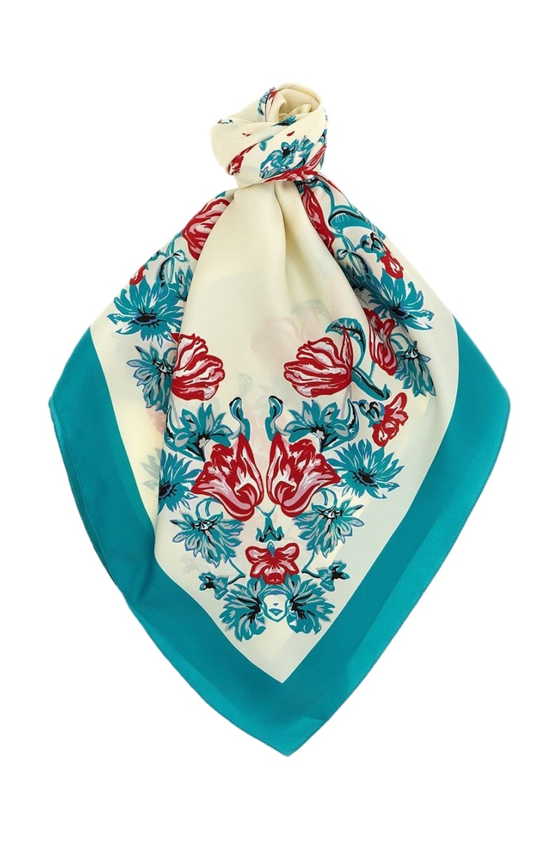 Zijden Sjaal - Ecru en Blauw