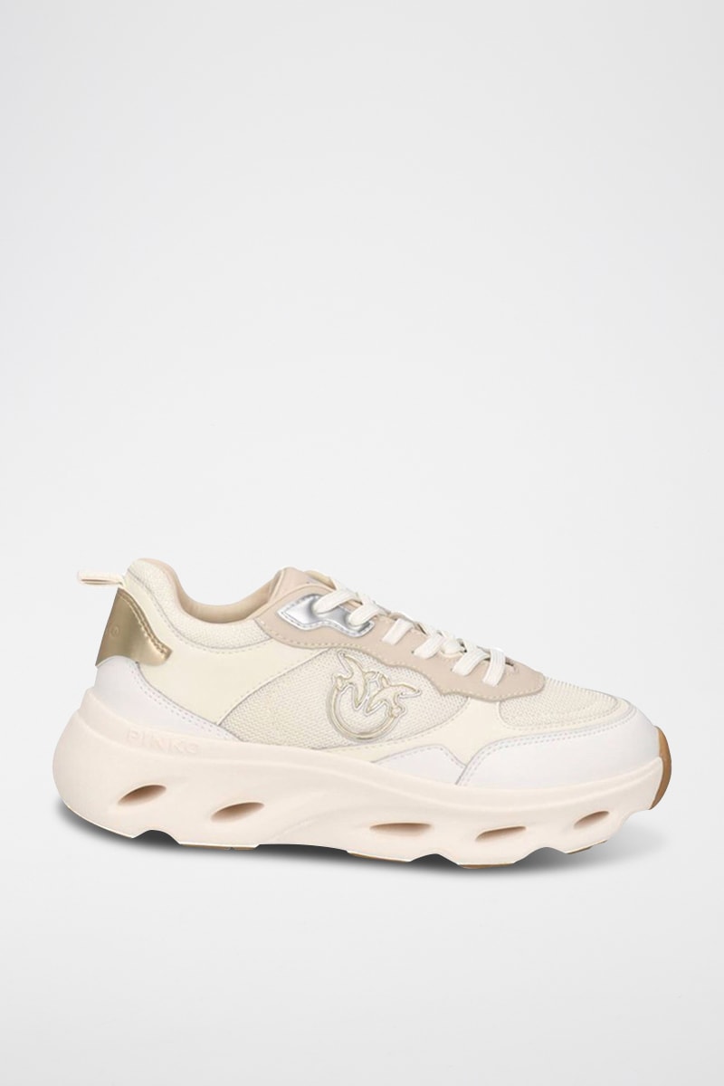 Kalfsleren Platform Sneakers - Wit en Beige