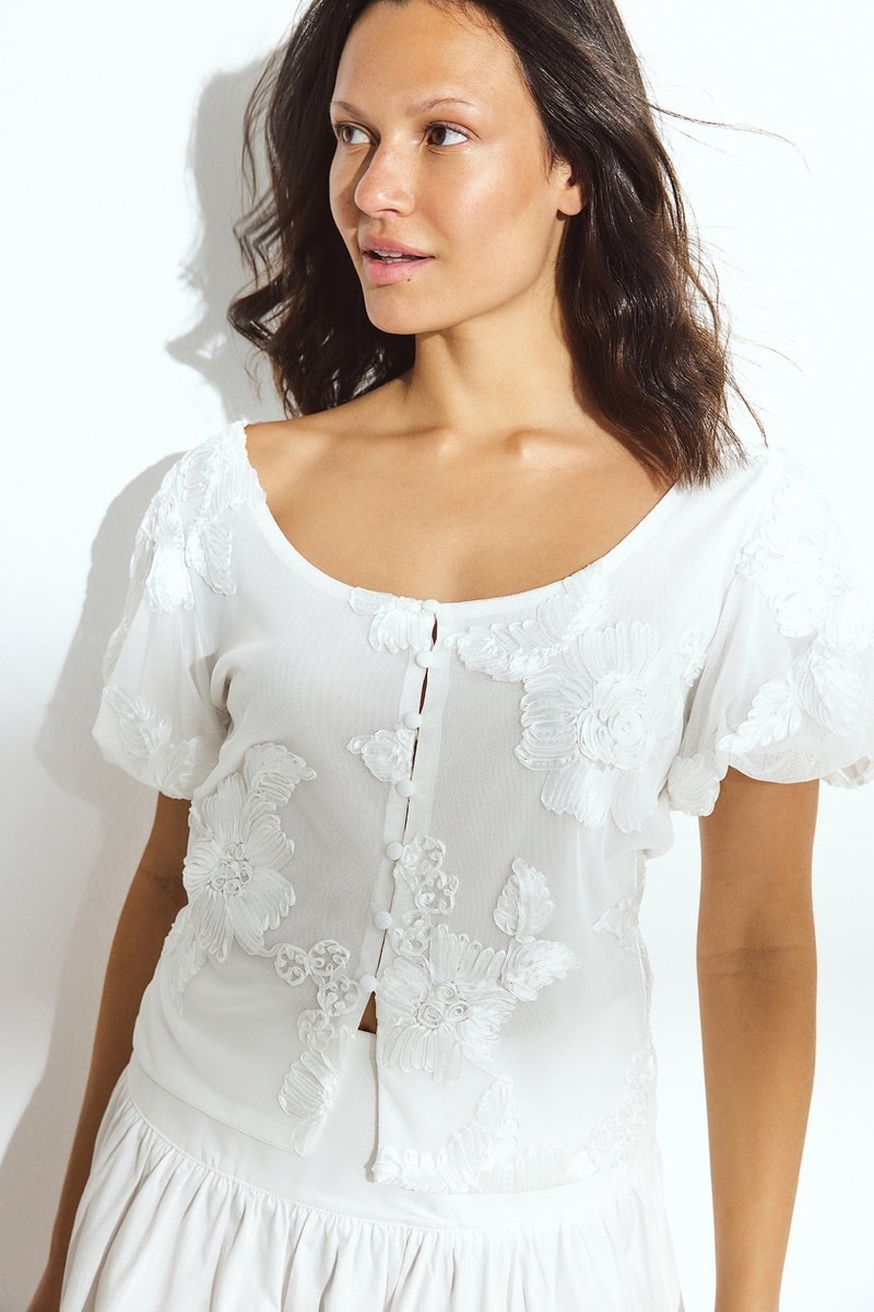 Blouse met korte pofmouwen.