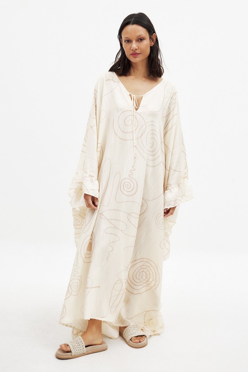 Druppelvormige uitsnijding met knoopsluiting aan de achterkant.