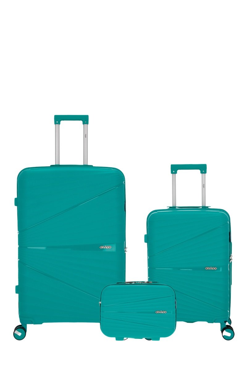 Set van 2 Trolleys met Beautycase Vela (S/L/W) - Groen - 55 / 75 / 35 cm
