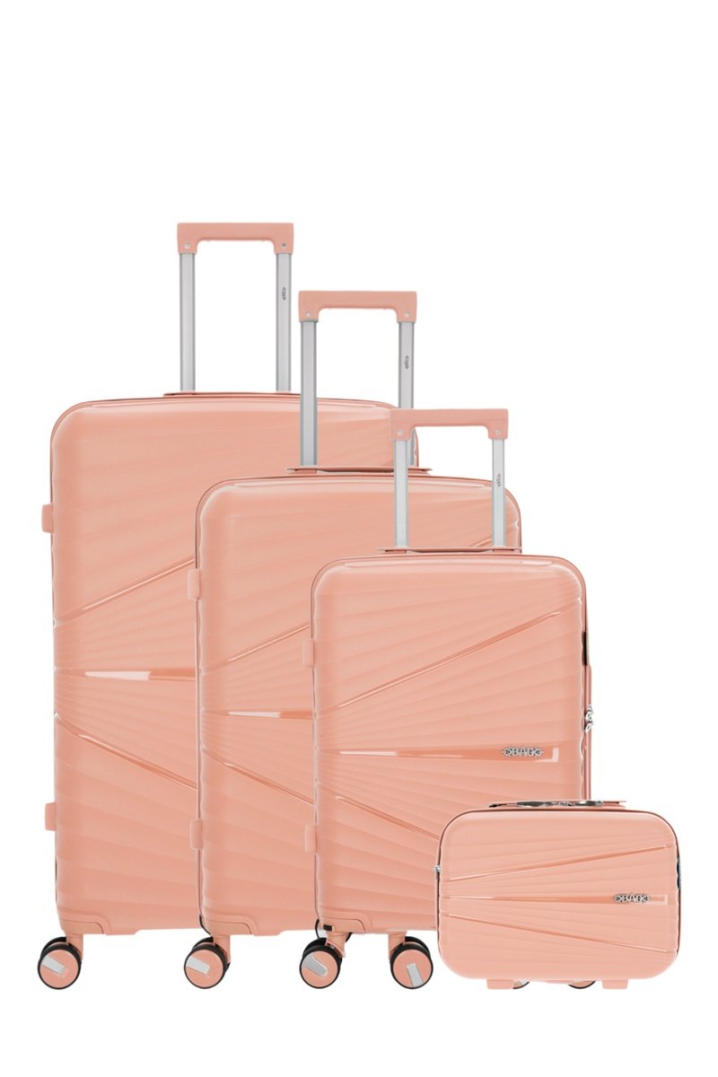 Set van 3 Trolleys en Beautycase Vela-C (S/M/L/W) - Lichtroze - 55/65/75/35 cm