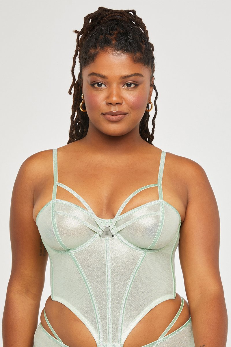 Satijnen Tangabodysuit Going Platinum - Groen